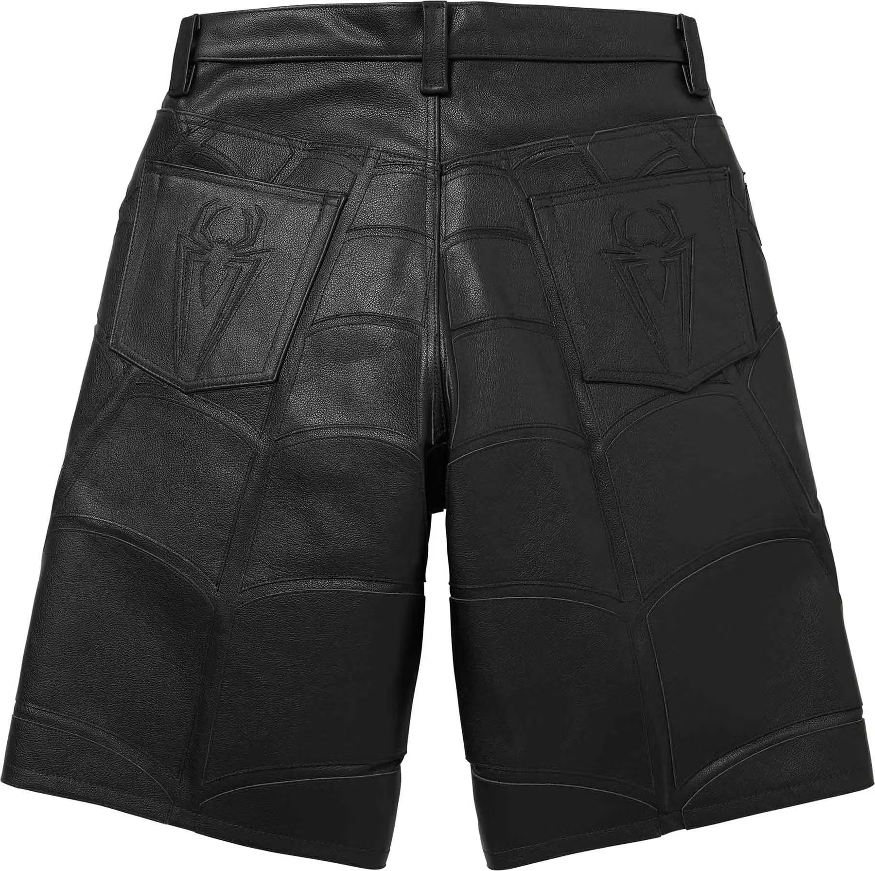 スパイダーマンを象徴するレッド&ブルーのカラーパレットや蜘蛛モチーフを採用したレザー素材のジャケット&パンツ。