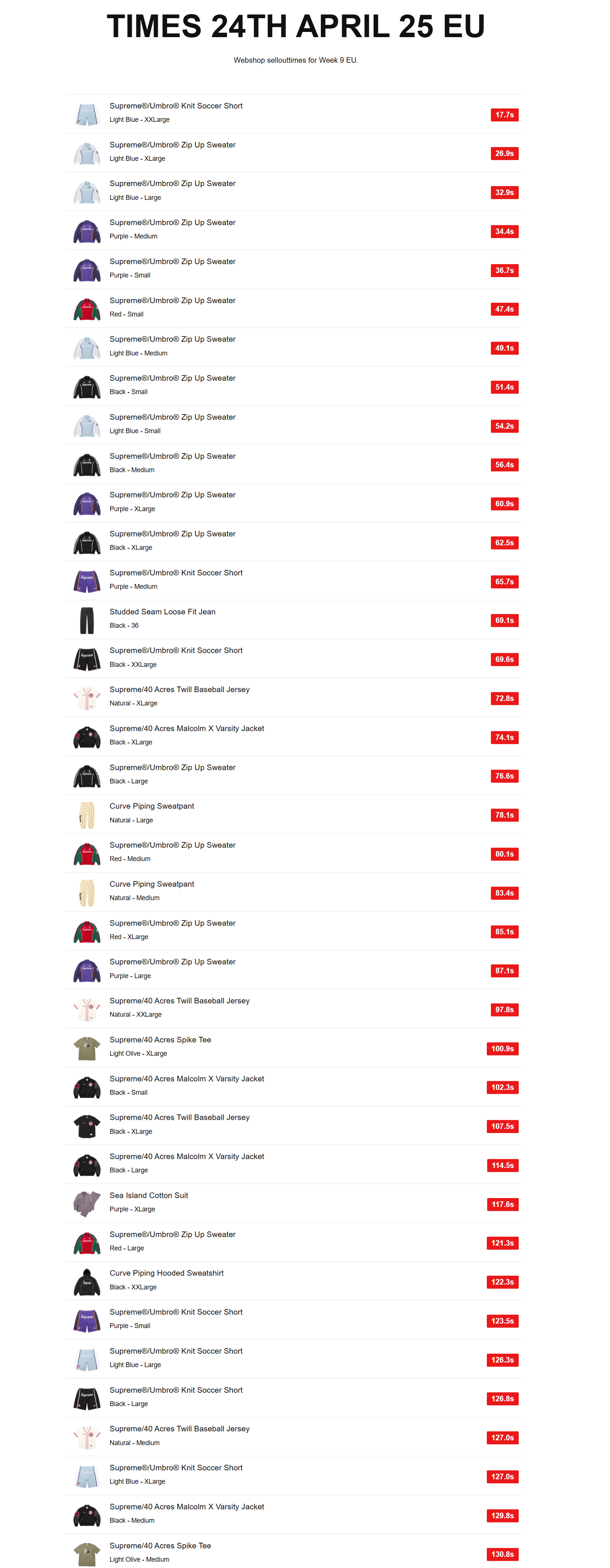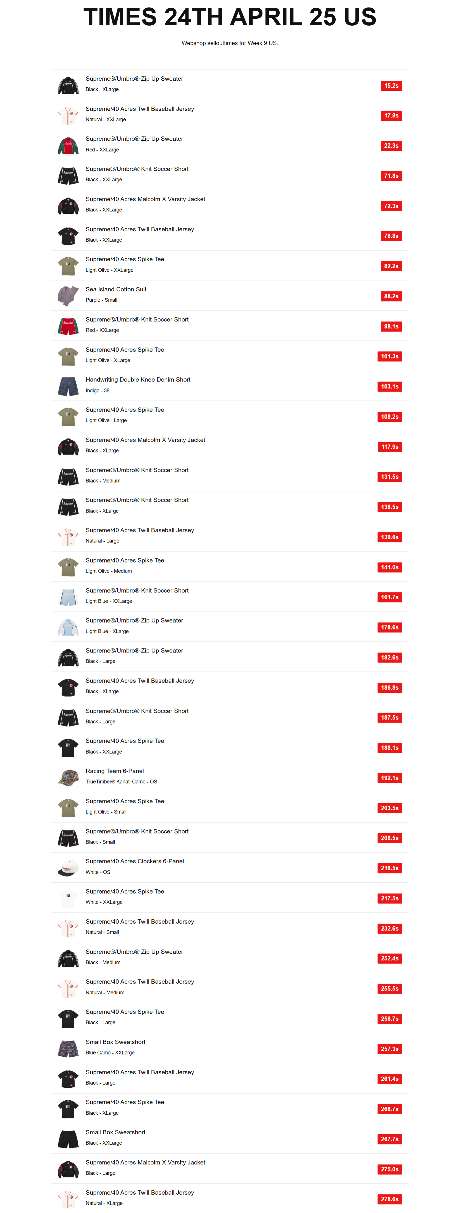 Supreme(シュプリーム) 2025年春夏コレクション WEEK9 の海外における完売スピードランキングをご紹介。
