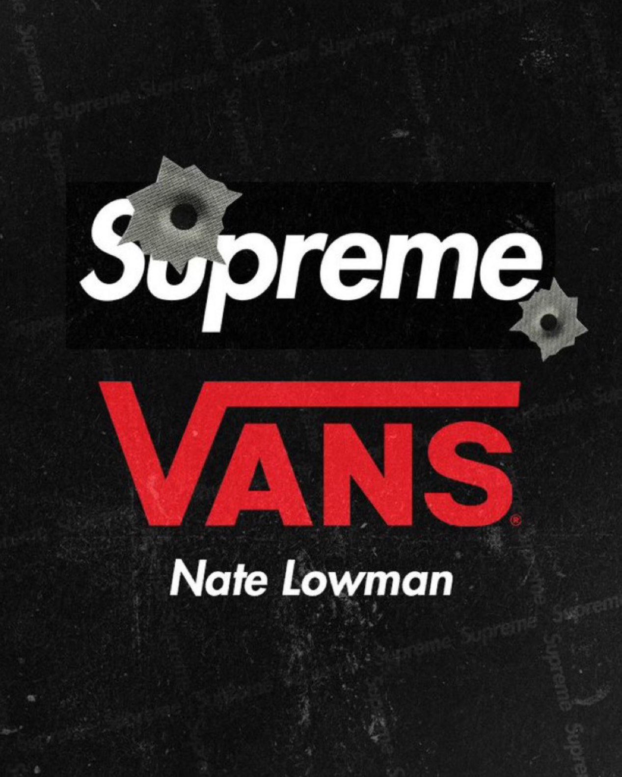 Supreme と VANS、そしてニューヨークを拠点とする現代アーティスト Nate Lowman によるトリプルコラボフットウェア。