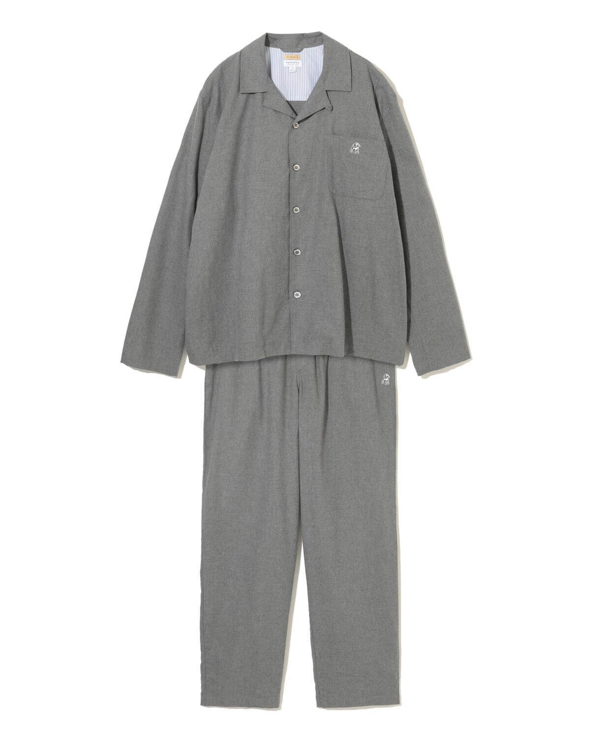 パジャマシャツは、SUNSPEL のアーカイブナイトウエアに着想したリラックスフィットで仕上げられ、パジャマパンツはソフトな風合いのコットンフランネルと、ストライプ柄のコットンポプリンを用意。