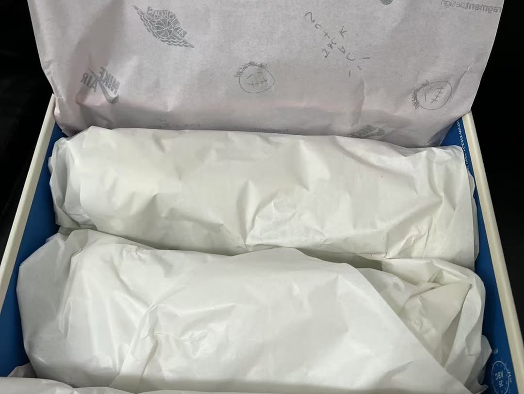 ・2025/11/21 UPDATE:Travis Scott × fragment design × NIKE AIR JORDAN 1 LOW “Sail/Military Blue” の公式オンライン注文分が配送開始。