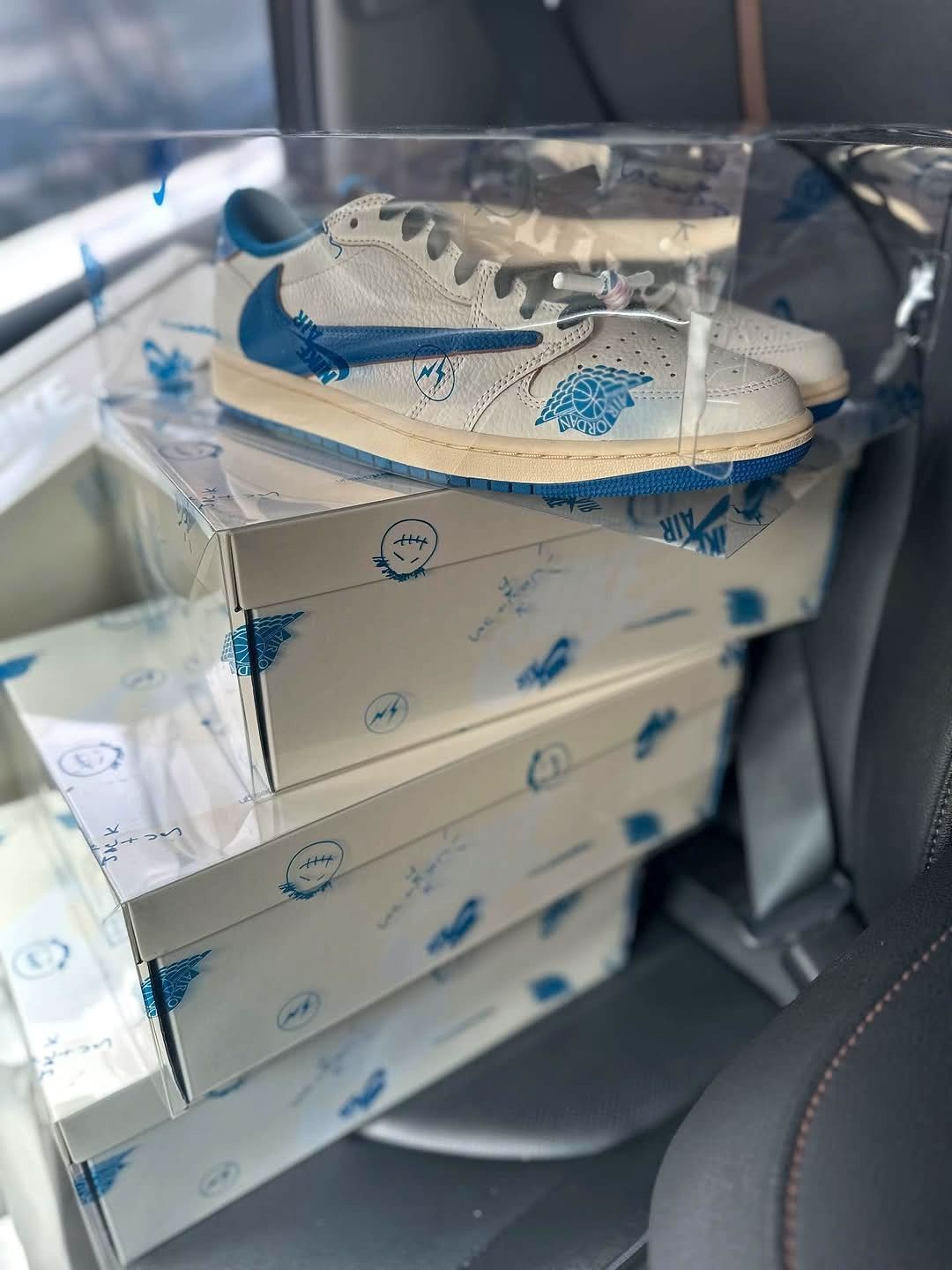 そして、Hijacked: A Tokyo Bay Takeover では Travis Scott × fragment design × NIKE AIR JORDAN 1 LOW “Sail/Military Blue” も発売。