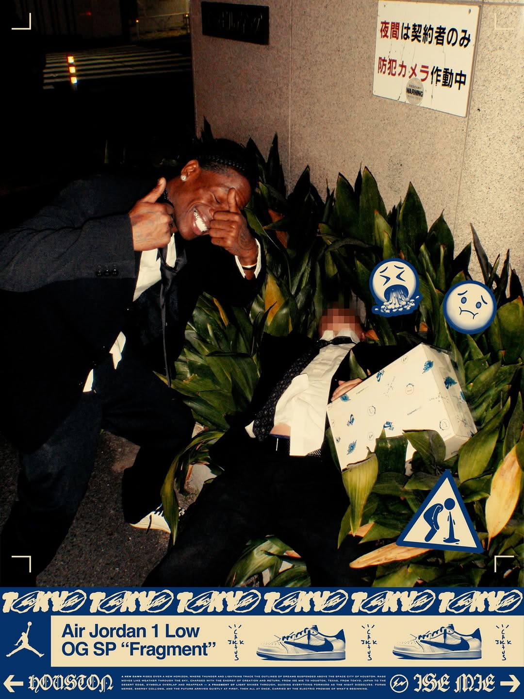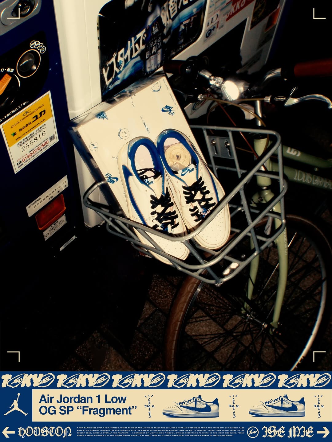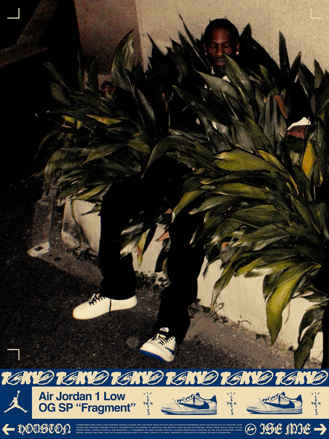 ・2025/11/26 UPDATE:Travis Scott がInstagramストーリーズにて、Travis Scott × fragment design × NIKE AIR JORDAN 1 LOW “Sail/Military Blue” のジャパンプロモ映像を再投稿した。