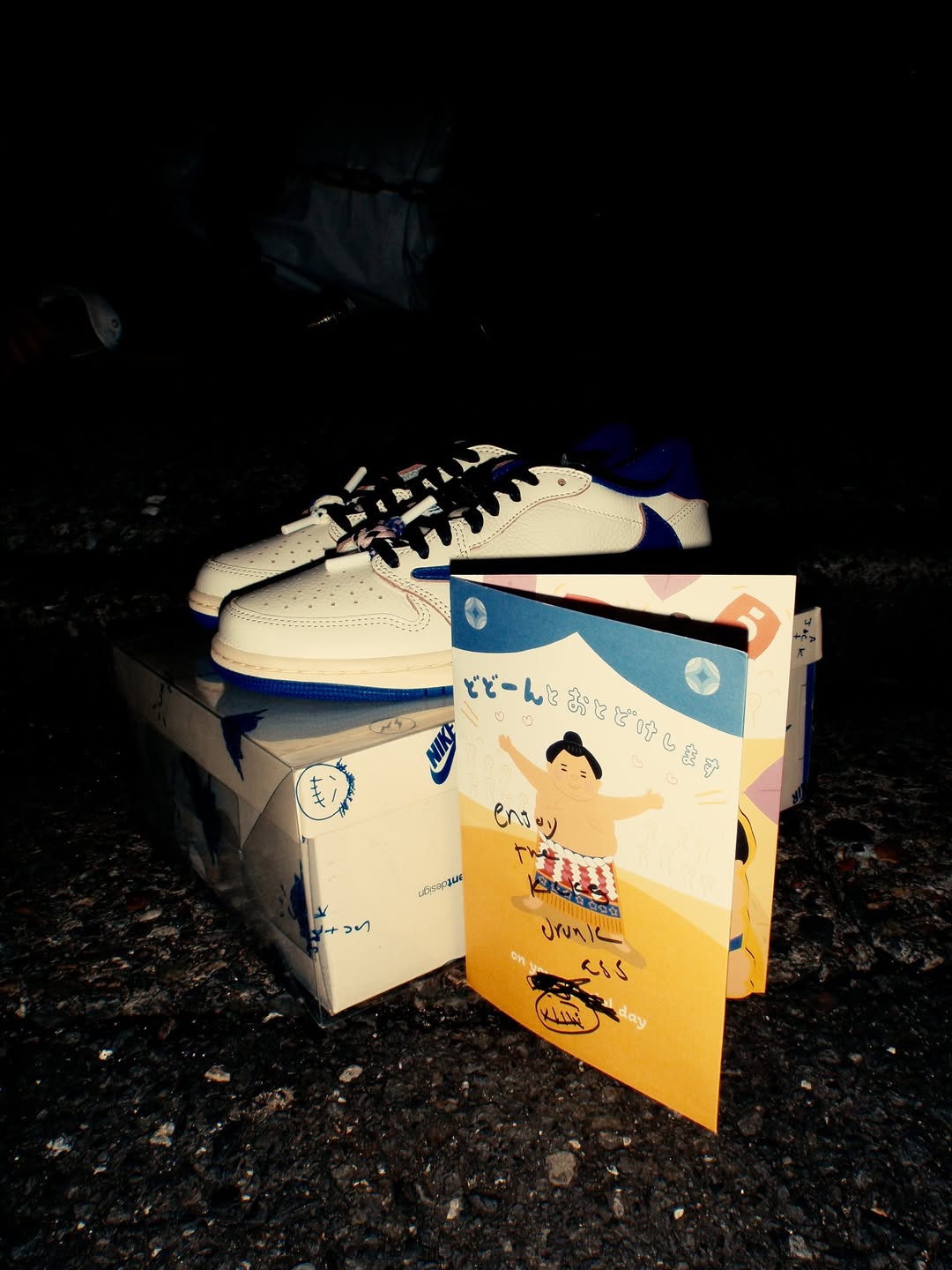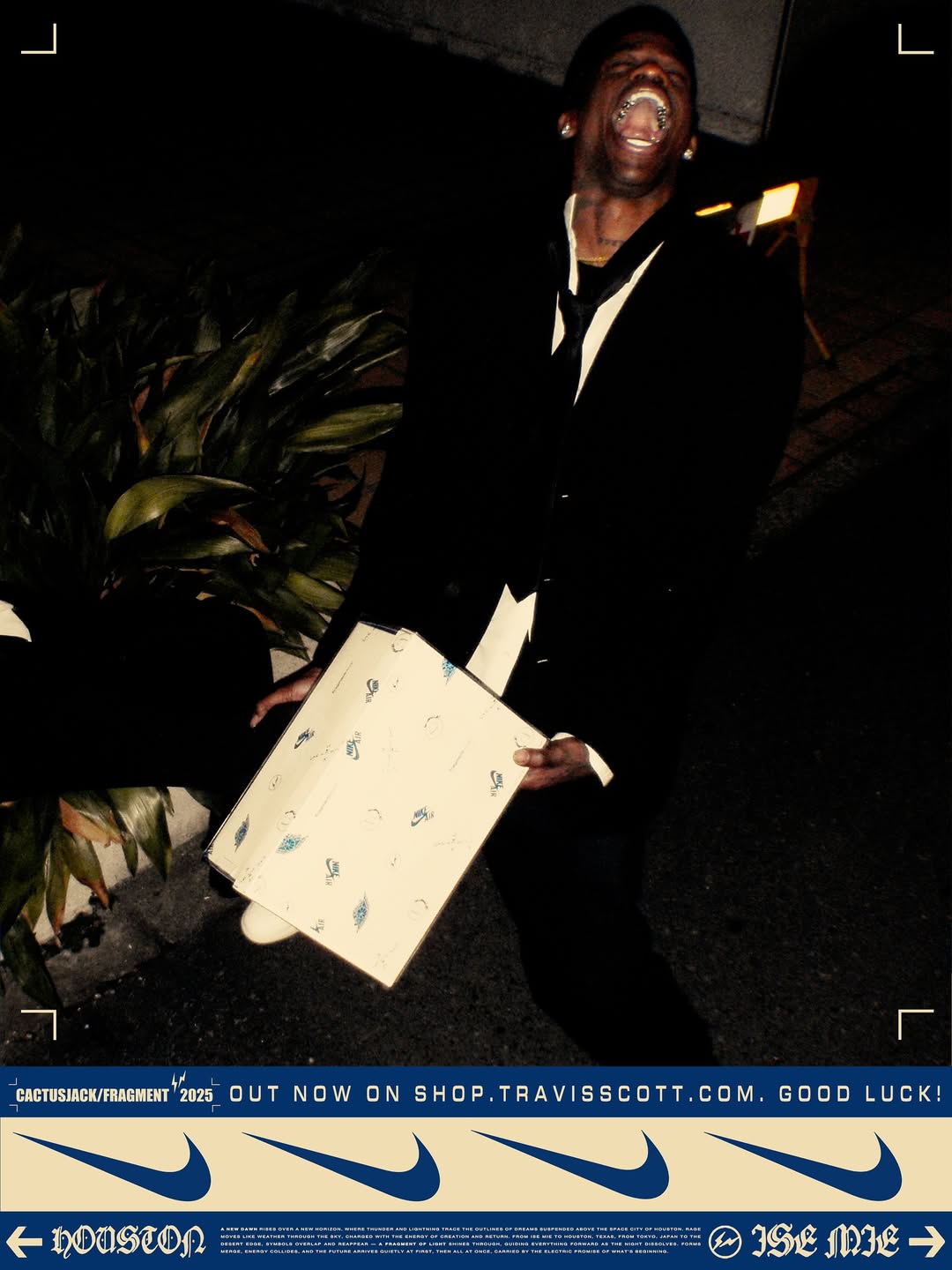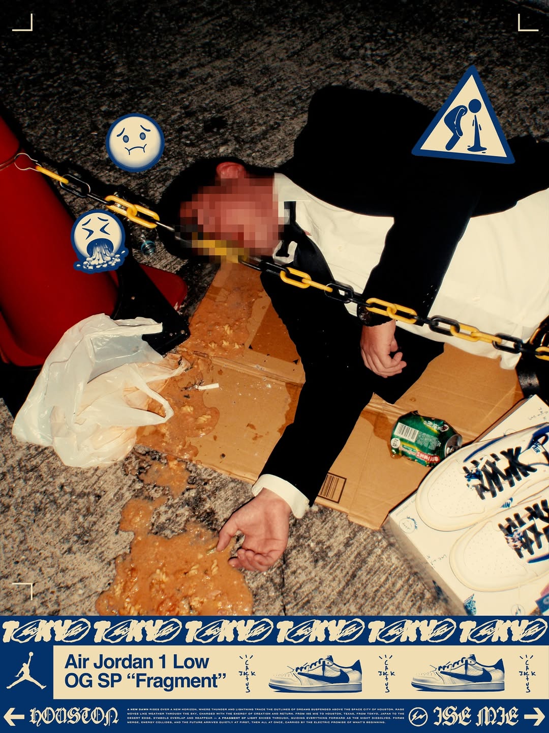 ・2025/11/26 UPDATE:Travis Scott がInstagramストーリーズにて、Travis Scott × fragment design × NIKE AIR JORDAN 1 LOW “Sail/Military Blue” のジャパンプロモ映像を再投稿した。