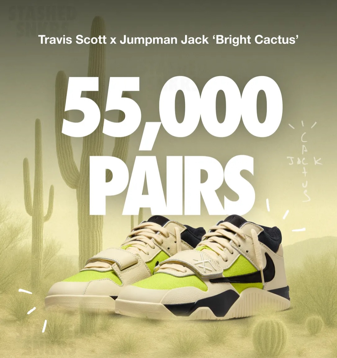 今回の情報によると、Travis Scott × JORDAN JUMPMAN JACK TR “Bright Cactus” は、全世界で僅か55,000足が用意されるとの事。