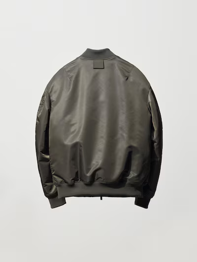ハイブリッドダウンオーバーサイズMA-1は、小雨程度の水をはじく撥水加工を使用。