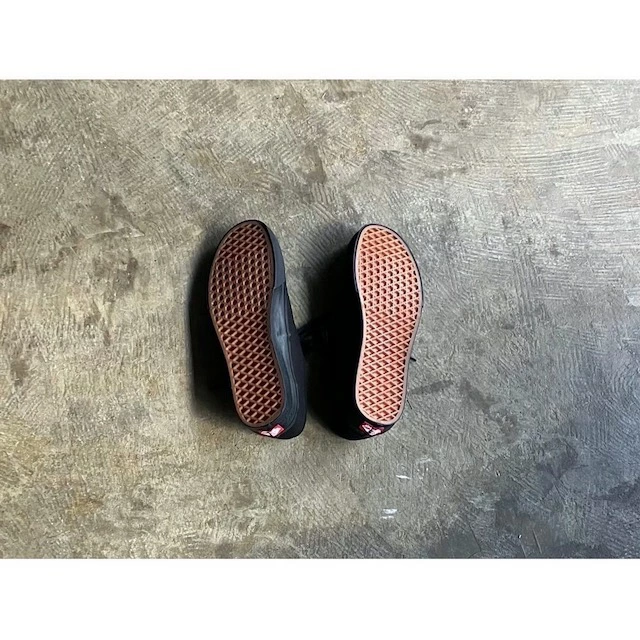 定番のキャンバス製オーセンティックより、どんなスタイルにも合わせやすい、オールブラックカラーをセレクト。