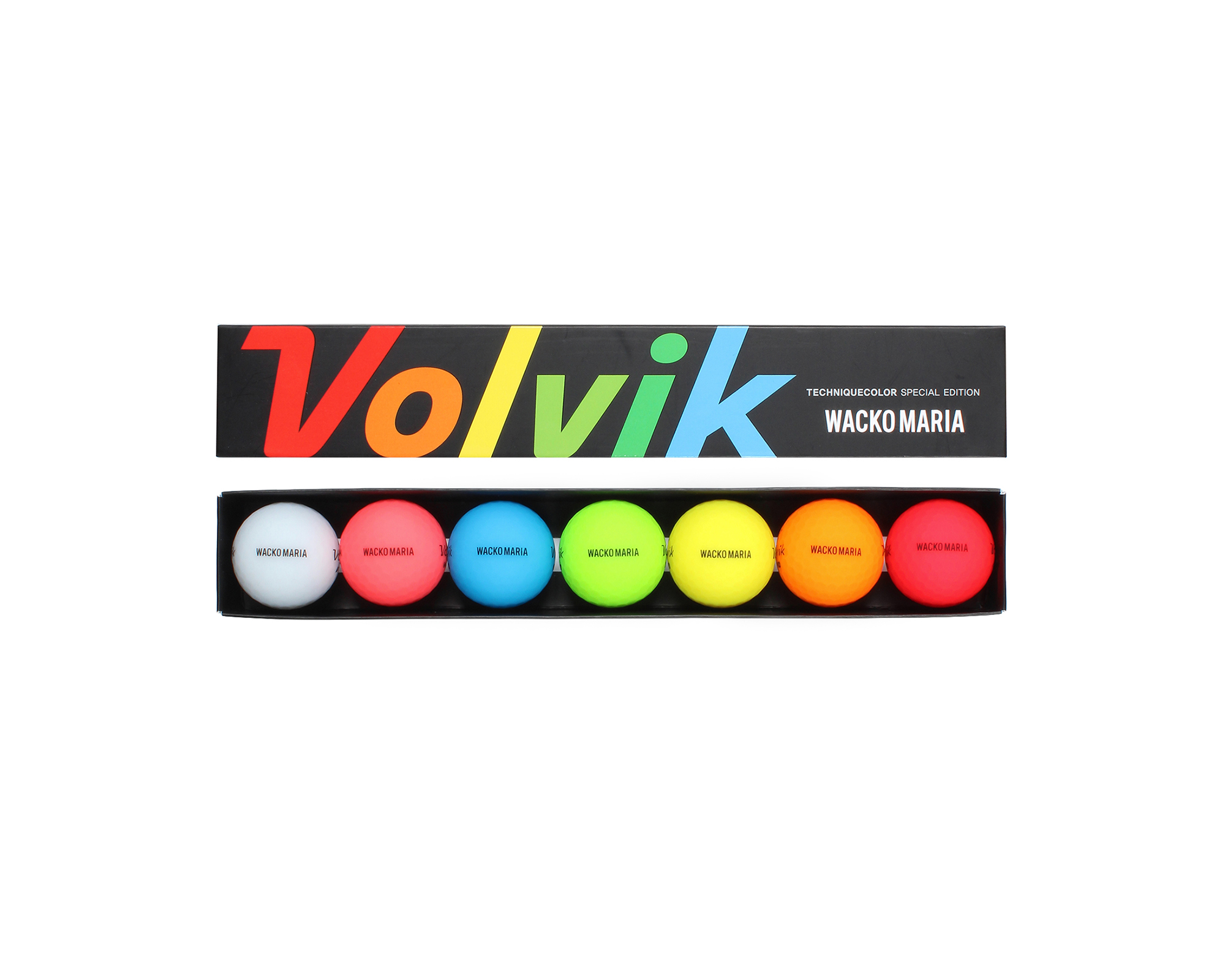 バスキア は同氏のアートワークを全面にデザインしたハワイアンシャツ(39,600円)、VOLVIK はカラフルなゴルフボールセット(7,700円)が展開。