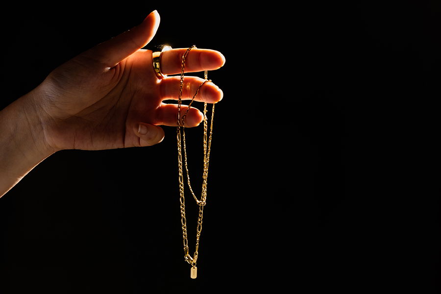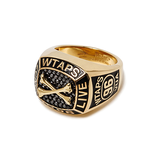 今回初めての取り組みとなる WTAPS と GRILLZ JEWELZ のコラボレーションは、スマートな印象を与える10Kのチェーンネックレスとブレスレット、ブラックダイヤモンドを嵌め込んだ同じく10Kのカレッジリング。